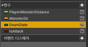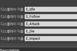 블루프린트 - 블루프린트 - 열거형 을 생성하여 Idle(대기), Follow(이동), Attack(공격), Die(사망), Impact(피격)
