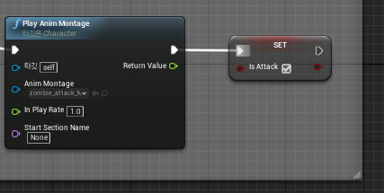 공격 애니메이션 몽타주 뒤에 Set is Attack를 설정하여주고 체크하여준다.