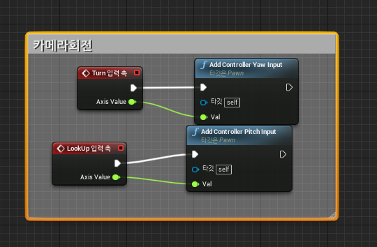 마우스를 이용한 X,Y축 회전을 도와준다. 그뒤에 만들어준 이벤트를 BP_Player내부에