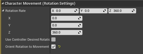 OrientRotation to Movement의 위치는 블루프린트의 CharacterMovement에 있다.